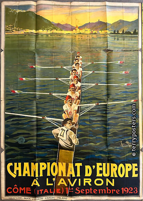 Původní tisk z roku uvedeného v popisu. Nejedná se o kopii ani reprint. Použitý plakát s celkově viditelným přeložením. Mohou se vyskytovat rozličné vpichy, natržení, lehčí stopy pomačkání, nebo menší vytržení (trhliny). Zarámovaný vyhlíží nezřídka stále ještě velmi dobře.
