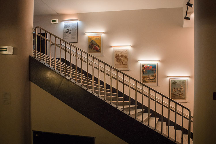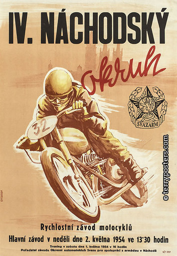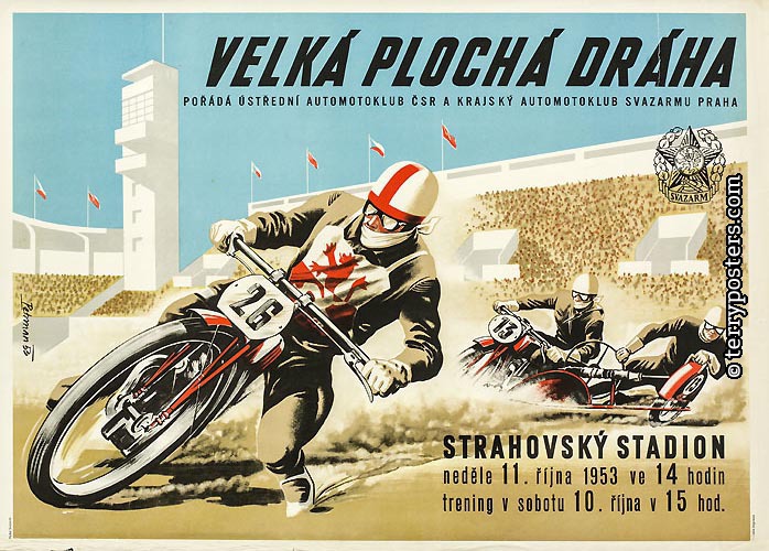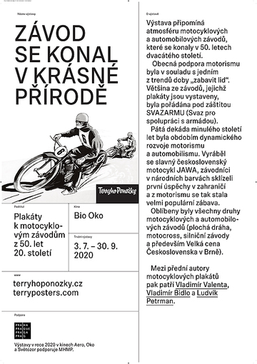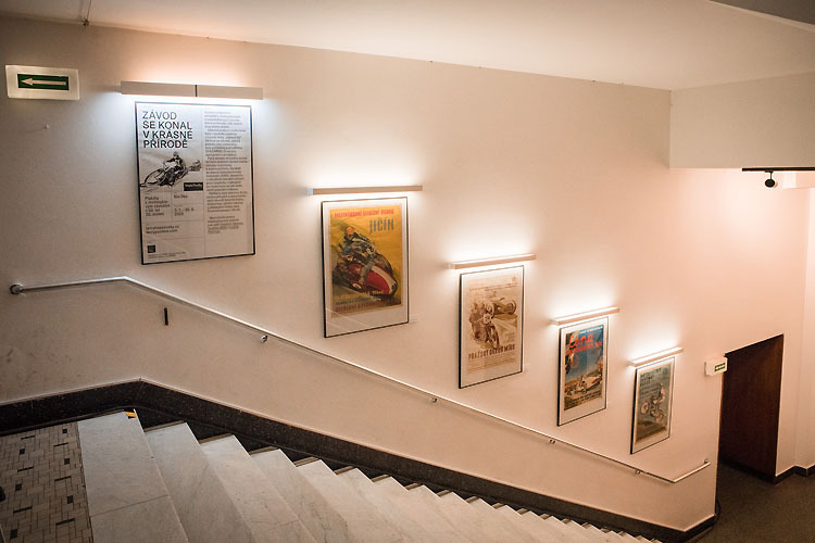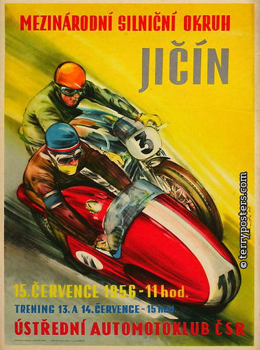 Výstava připomíná atmosféru motocyklových a automobilových závodů, které se konaly v 50. letech dvacátého století. Obecná podpora motorismu byla v souladu s jedním z trendů doby „zabavit lid“. Většina ze závodů, jejichž plakáty jsou vystaveny, byla pořádána pod záštitou SVAZARMU (Svaz pro spolupráci s armádou). Mezi přední autory motoristických plakátů pak patří Vladimír Valenta, Vladimír Bidlo a Ludvík Petrman.