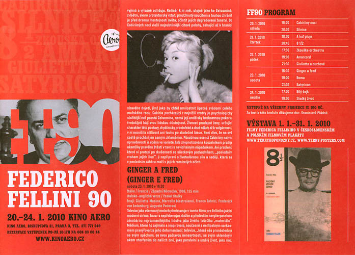 V rámci Přehlídky filmů Federica Felliniho v domovském kině Aero se představuje kolekce československých a polských výtvarných plakátů k filmům tohoto velikána světového filmu. Sbírka filmových plakátů TERRYHO PONOŽKY obsahuje 22 plakátů k filmům Federica Felliniho.